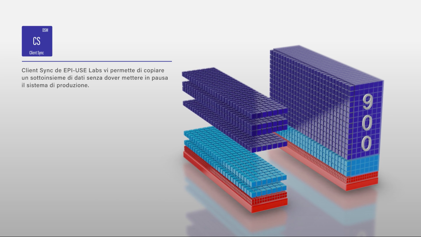Client Sync™, parte della suite Data Sync Manager™ (DSM), crea mandanti SAP ottimizzati, perfettamente funzionanti e con integrità dei dati completa; un'alternativa a un aggiornamento completo del sistema.