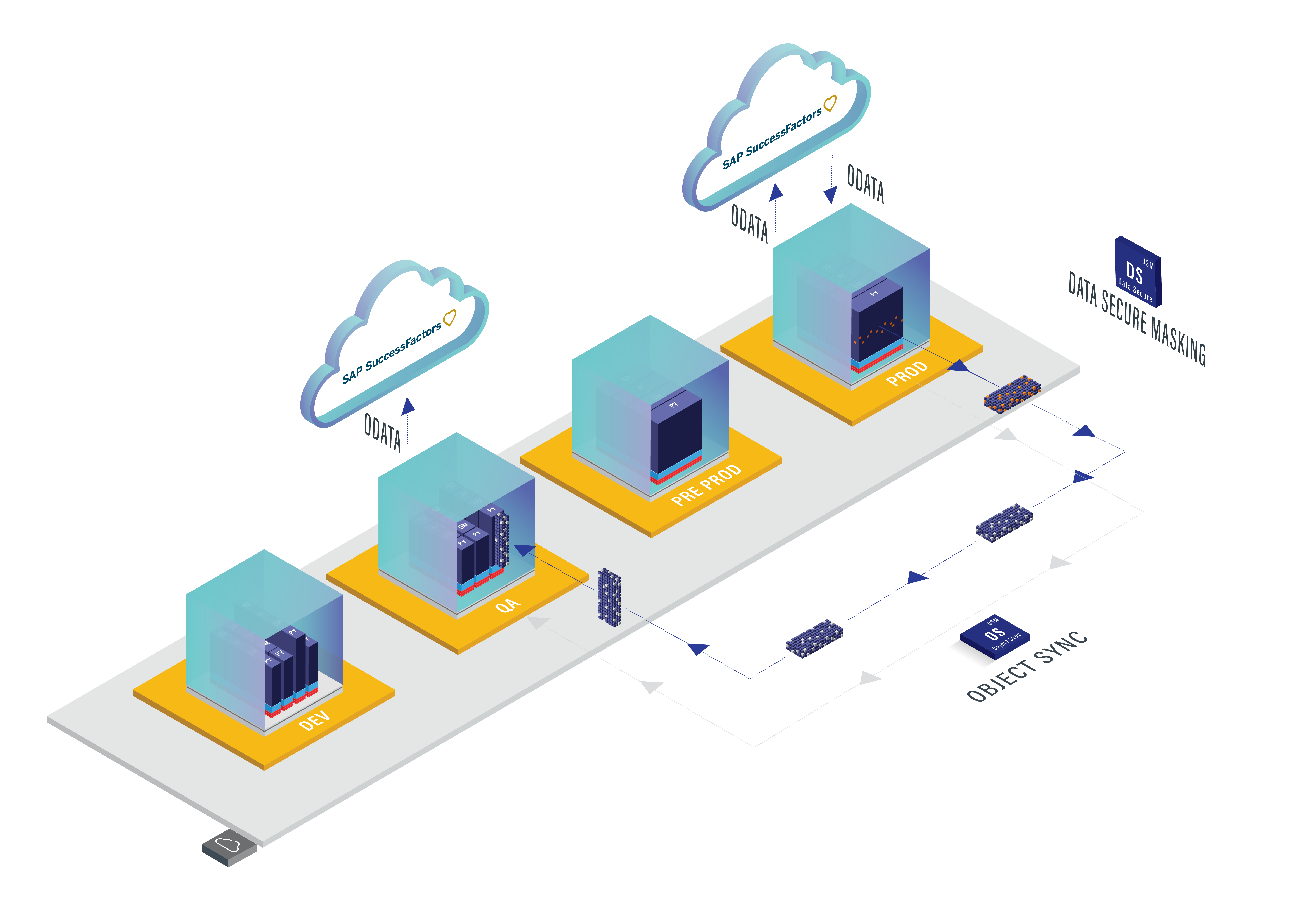 In on-premise ECC SAP, you have different environments often titled Development, QAS and Production, and system configuration and customizing is transported between them. The methodology is that items are configured in the Development client, unit tested there and then transported to a QAS client for potential system, integration and regression testing, and then on to a Production client for live use. In the on-premise world, this makes it relatively easy to have organizational structures, objects and employee data synchronized between clients. Many of our clients leverage Data Sync Manager™ (DSM) for HCM to solve this challenge. DSM gives you the data you need, when you need it. This SAP-certified solution allows you to select and transfer specific HCM data objects easily and accurately, as needed, and to mask sensitive data for confidentiality, security and governance compliance.