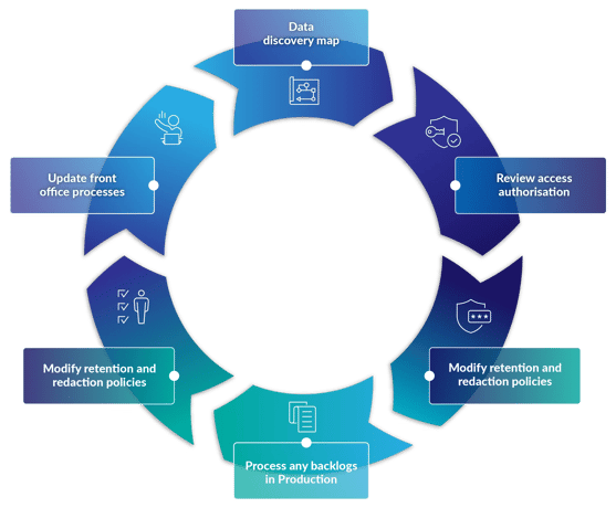 | Proactive privacy management | An essential item for consideration by all businesses, this enforces the need to create retention policies for your data, including proactively identifying Data Subjects (and their related data) where organisations no longer have the legal justification to maintain that information, and processing data removal. |